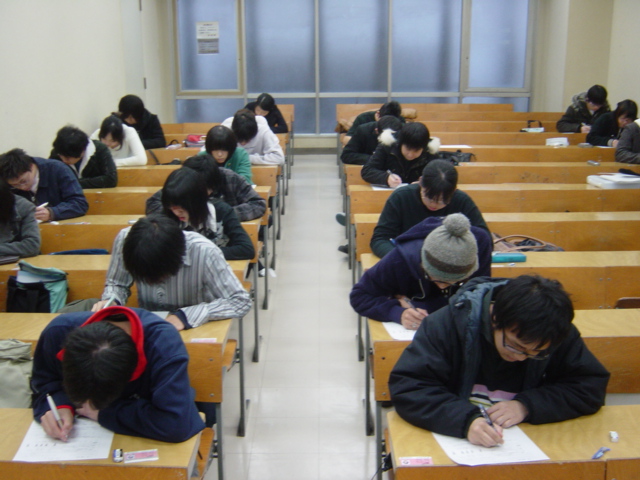 昨日から音響芸術科は後期試験に入りました☆この試験が終了すれば冬休み♪後もうひと踏ん張りです!2年生はこれが「学生生活最後」のテスト。悔いの無い様精一杯頑張ってもらいたいと思います。HRでも散々↑のような話をしていたので、今までにない真剣な眼差しでテストを受ける2年生。教室にはカリカリと鉛筆の心地よい音が響き渡ります。「これは夢の全員合格達成かっ!???(゜0゜;)」と心臓が高鳴ります!しかし5分後…